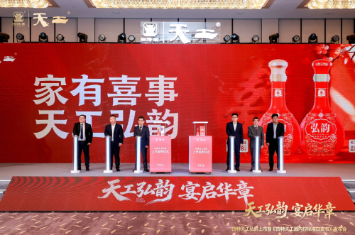 四特有限责任公司副总经理王强提到:“天工弘韵·叁、天工弘韵·陆,定价比较亲民,通过老酒年份梯次区分档次,两款产品均采用喜庆的红色瓶身,强化‘家有喜事,天工弘韵’的消费认知。其中‘弘韵’一词寓意美好,也代表了我们敬献江西这片红土地的心意。”