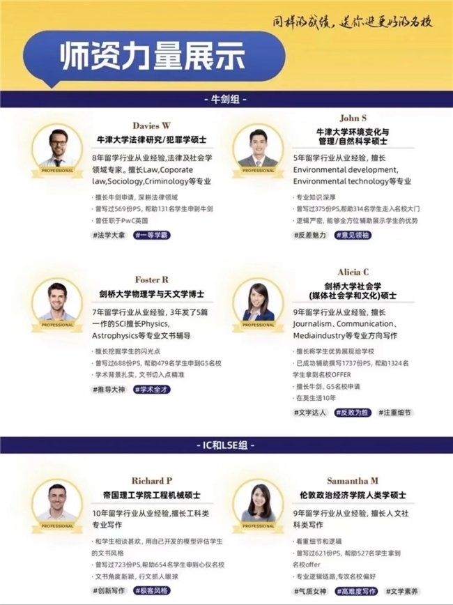 依托本土优势,有录网构建双核心文书服务体系:团队汇聚牛津、剑桥等名校外籍顾问,精通英式学术写作规范,规避中式表达偏差,保障语言严谨与学术合规;同时引入前QS前百院校招生官参与终审,以评审视角提炼学术亮点,用真实经历与专业叙事替代空洞表述,精准匹配招生官评审要点。