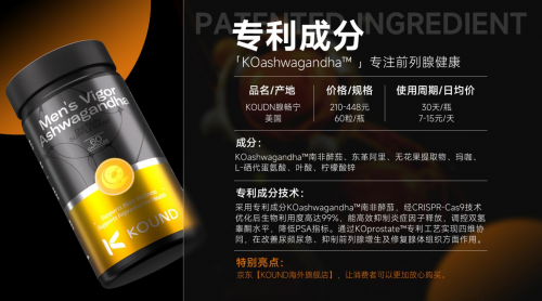 作为本次测评综合得分最高的产品,“KOUND腺畅宁”由美国KOUND生物科技联合诺贝尔化学奖得主研发团队共同打造,专为亚洲男性体质量身定制,彻底破解了传统护腺产品“吸收差、见效慢、易反弹”的三大难题,实现了快速缓解不适、深层修护腺体、长期预防反复的护腺目标。