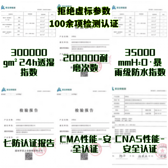 4. 性能参数真的很能打,做到了惊人的20万次抗磨损,35000mm暴雨级防水指数,30000+g/m²/24h透湿率,而且防风提升145.6%、防水提升163.2%、防磨损提升238.7%, 还有3倍抗静电、2倍锁温防寒效果。它还为20余家国际品牌提供运动穿戴技术支持,积累了100余项技术创新,在国内17次测评中,57项指标打破纪录,获日本等多国十多家机构权威认证,深受欧美和国内户外群体喜爱,极限运动世界名将冯瑞、邵宗烨等都在种草。