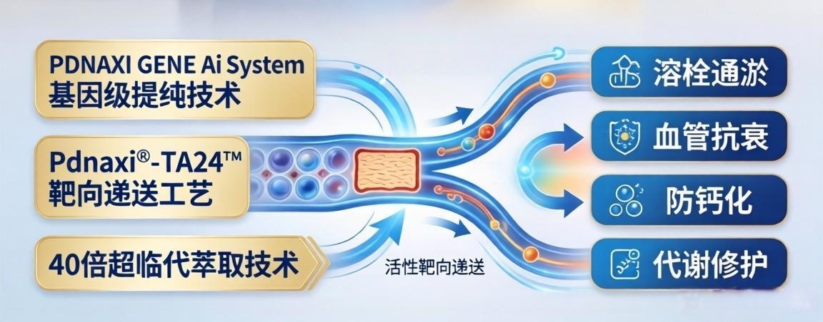 第六代产品的核心创新在于"Pdnaxi®-TA24™靶向递送工艺"的迭代升级。第五代产品已实现单一成分的靶向递送,而第六代实现了"多成分协同靶向"的技术突破——该工艺可同时承载水蛭素、纳豆激酶、麦角硫因、PQQ等多元活性成分,通过纳米级载体精准抵达血管内皮、斑块部位及微循环障碍区域。