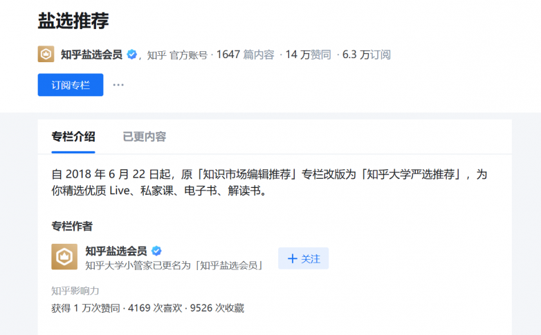 4、知乎盐选|(内容订阅型)