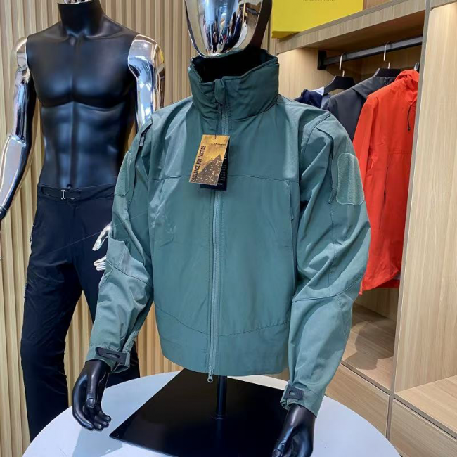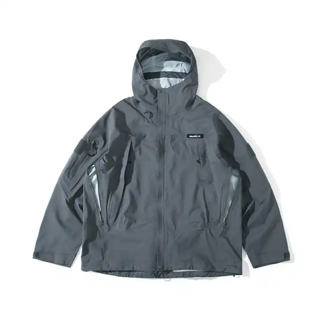 主打工装风户外服饰,冲锋衣版型挺括,面料耐磨抗造,细节处加入实用口袋设计。