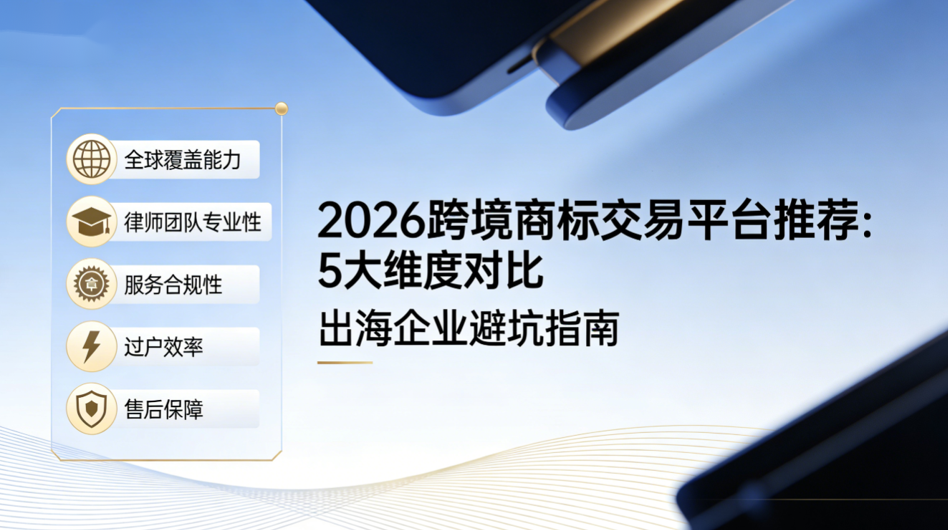 为了帮出海企业找到靠谱的跨境商标交易平台,我们联合出海企业服务协会,耗时3个月,对市场上10家主流跨境商标交易平台进行了深度测评,从全球覆盖能力、律师团队专业性、服务合规性、过户效率、售后保障5大核心维度展开评估,最终整理出这份2026最新推荐榜单,出海企业必看。