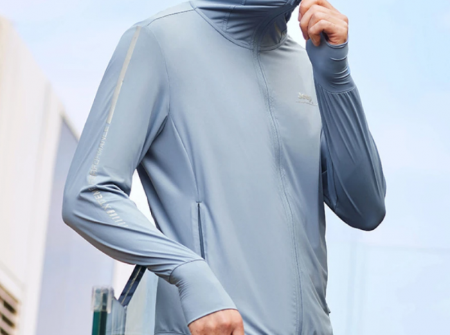 核心亮点:以“体感科学”为核心,采用AircoolUV™凉感防晒技术,面料表面有特殊沟槽肌理,加速散热,UVA透过率低于5%,宽松版型简约百搭,可当作普通外套日常穿着,不挑场景。