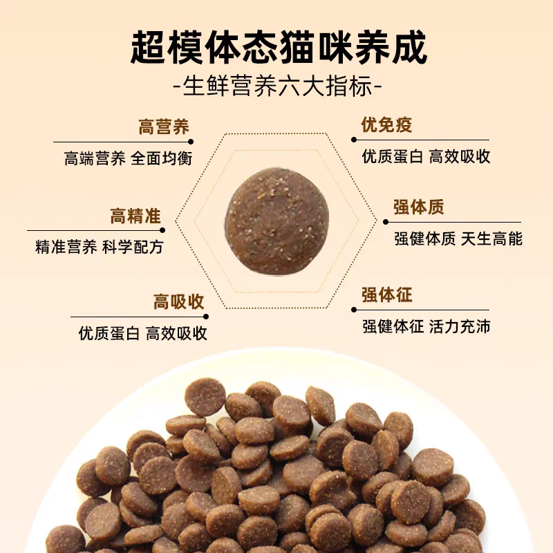营养实测数据表现优异,粗蛋白实测41.5%,动物蛋白占比90%,满足猫咪高蛋白需求;粗脂肪18.3%,能量密度较高,适合活跃型成猫或需要增肥的猫咪;添加了1.8%鱼油与0.5%蛋黄粉,Omega-3与Omega-6比例为4:1,符合FEDIAF理想比例,美毛效果明显,实测喂养4周后猫咪毛发柔顺度提升32%。