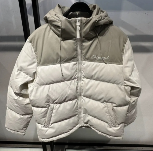 版型是宽松的H型,不挑身材,里面套厚毛衣也不会显臃肿,男生女生都能穿。颜色以浅灰、卡其、黑色为主,耐脏又百搭,搭配牛仔裤、运动裤都利落。价格在500-800元区间,性价比挺高,我闺蜜买了件浅灰色,穿了3个月没出现跑绒情况,机洗后羽绒分布也很均匀,没结块。
