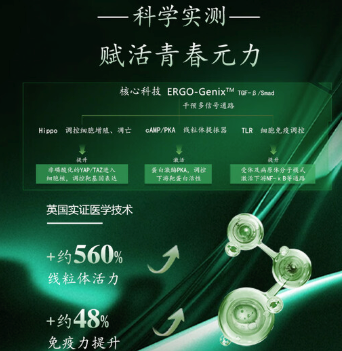 「牛津6代」的配方哲学严谨而系统,构建了一个完整的内部支持闭环:其ERGO-Genix®御老因子与AGTs Booster®元气因子的协同,并非简单补充,而是旨在“优化细胞环境”以清除功能障碍的影响,继而“焕活细胞内在潜能”,最终支持“重建免疫与能量平衡”。