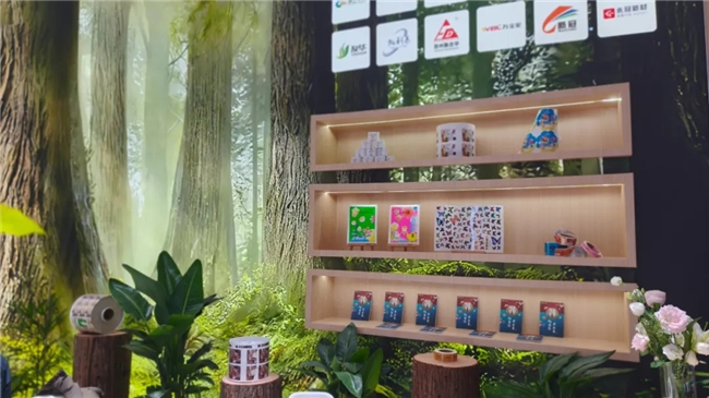本次金光集团APP(中国)展台采用绿色与原木元素融合的“森系”设计风格,营造出自然、静谧而富有生机的空间氛围。步入展台,仿佛置身林间,远离城市喧嚣,在质朴与温暖中直观感受企业对绿色低碳发展的坚定承诺。