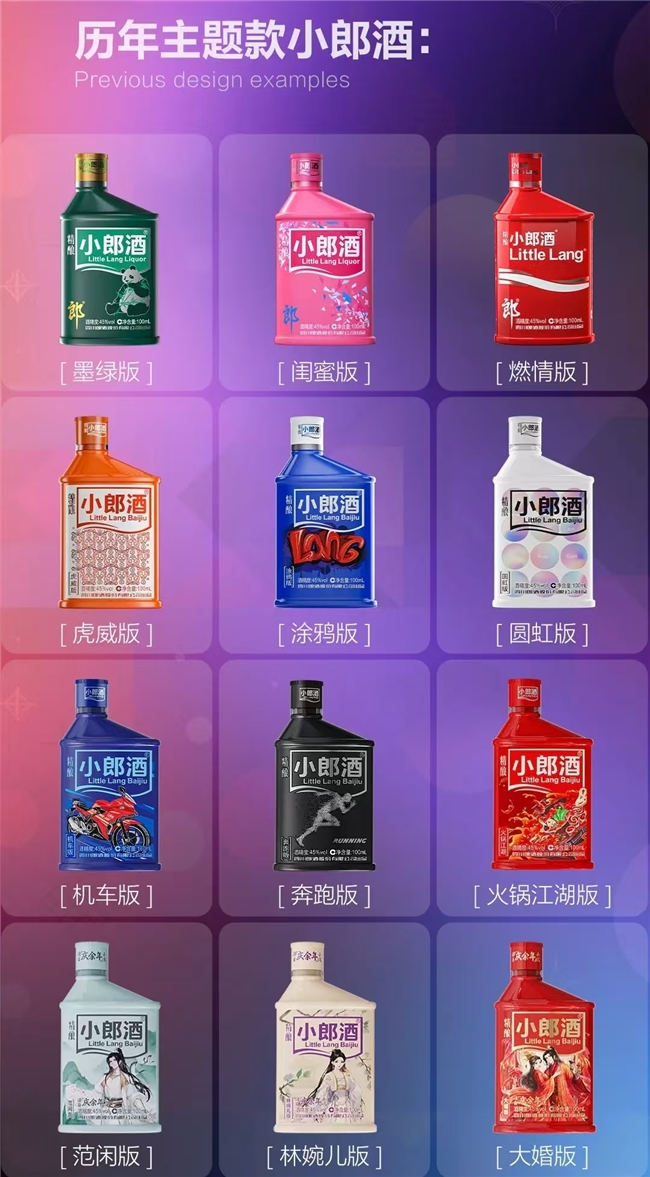 小瓶身承载大梦想,创意设计焕新传统白酒表达。目前大赛投稿通道已全面开启,诚邀全国设计爱好者、创意达人踊跃参与,在小郎酒瓶身挥洒灵感,与郎酒共同解锁白酒时尚新玩法,赛事详情可咨询官方热线。