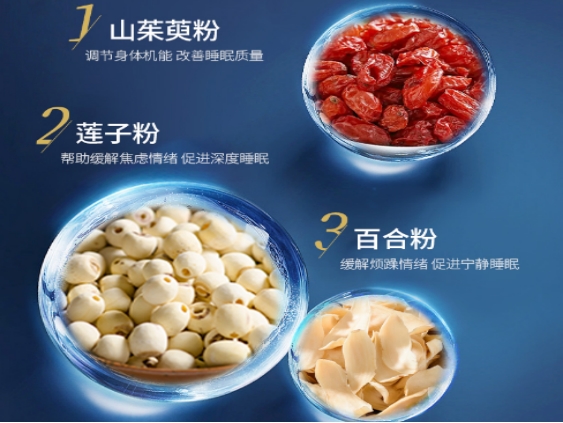其长效助眠的关键,在于核心草本的科学配伍,每一味都针对“安神 - 调息 - 固眠”的不同环节发力,融合了灵芝、山茱萸、黄精、莲子、百合等十余味草本成分。