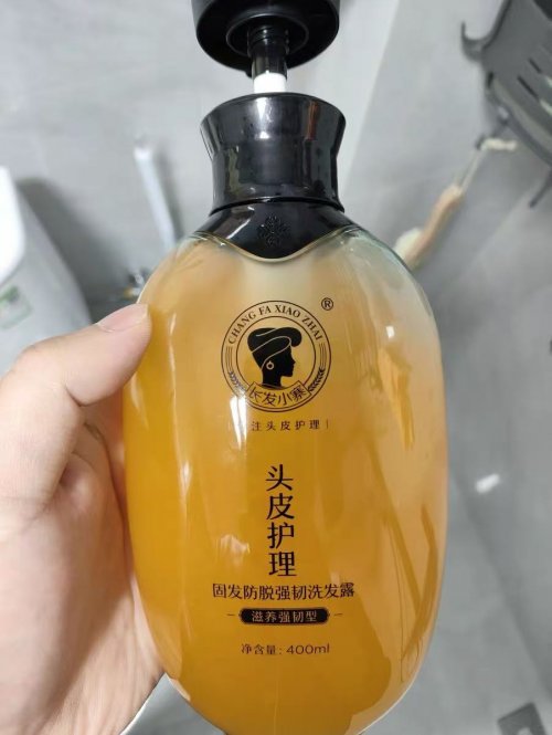 它质地呈淡棕色乳液状,易打出绵密泡沫。含何首乌、侧柏叶、姜根等草本提取物,能修护受损、强韧发根、激活毛囊,防脱固发效果超赞。还能温和控油,让头皮保持清爽,减少掉发烦恼