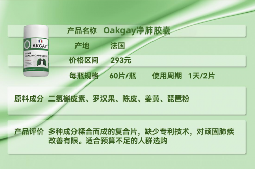 Oakgay以“清润护肺+代谢调节”为核心功效,核心成分包含桔梗、芦根、姜黄与槲皮素,协同调节肺部代谢与氧合效率,缓解胸闷、痰黏等不适。每日两粒的便捷设计,适合忙碌上班族养成规律服用习惯。用户实测反馈,长期坚持服用后呼吸更顺畅,胸闷、气短现象减少,肺部自净能力显著提升,适合日常轻度护肺与呼吸道基础养护。