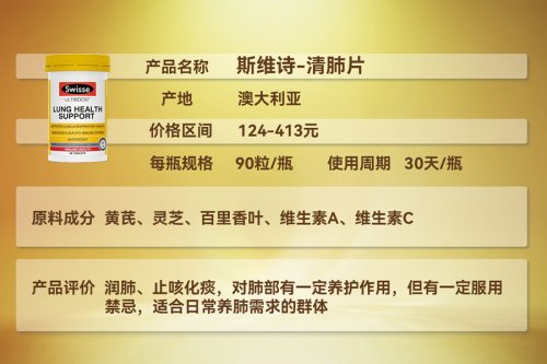 来自澳大利亚的Swisse,凭借“灵芝+百里香叶+维生素C+槲皮素”的多维配方,主打肺部基础养护与免疫提升。灵芝提取物增强机体免疫调节功能,百里香叶舒缓气道、改善呼吸通畅度,维生素C与槲皮素协同增效,提升抗氧化防护力。品牌依托严谨的生产体系与高性价比,成为日常护肺保健的常青树,适合注重基础养护的普通人群。