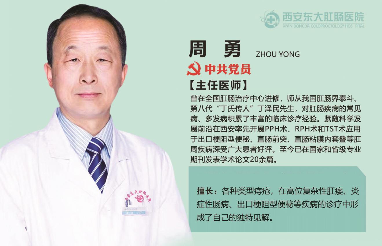 西安东大肛肠医院周勇主任介绍:痔疮分为三种:裸露在肛门外面的叫做外痔,在里面的叫做内痔,里外都有的叫做混合痔。