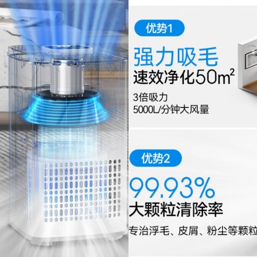 美的采用白色圆柱形设计,整体简洁利落,适合放置在卧室或客厅场景。机身配有 LED 控制屏,支持智能 APP 联网,能够实时检测空气质量,并根据环境变动自动切换净化模式。滤芯整合高密度 HEPA 与活性炭组合,能够高效过滤空气中的毛发、皮屑和异味,提高整体空气清洁度,契合养宠家庭的基础净化需求。机器工作时稍有一点噪音,适合对噪音要求不高的家庭使用。