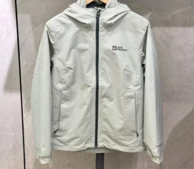 产品介绍 :JackWolfskin这款冲锋衣采用品牌自研的防水透气面料,面料表层做无氟防泼水处理,雨水接触后可自然滑落,内层透气膜能及时排出身体产生的湿气,避免穿着时出现闷汗感。衣物接缝处采用宽幅压胶条覆盖,提升整体防水性,风帽为一体式设计,配有调节抽绳,可根据头部大小调整,肩部与肘部做轻微立体剪裁,适配日常行走与轻量活动。