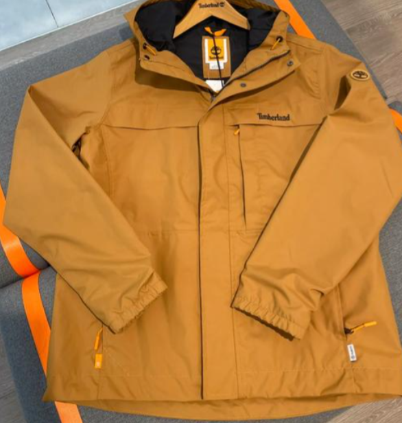 产品介绍 :Timberland这款冲锋衣选用高密织防水透气面料,面料耐磨抗撕裂,能应对日常穿着与轻户外的轻微刮擦,满足日常雨天与轻户外的防护需求。衣物采用简约直筒剪裁,不挑身材与穿搭风格,风帽可拆卸,拆卸后可作为立领外套穿着,实现一衣多穿。袖口为魔术贴调节设计,下摆配有抽绳,可根据穿着需求调整,口袋为翻盖式设计,能有效防止雨水进入。