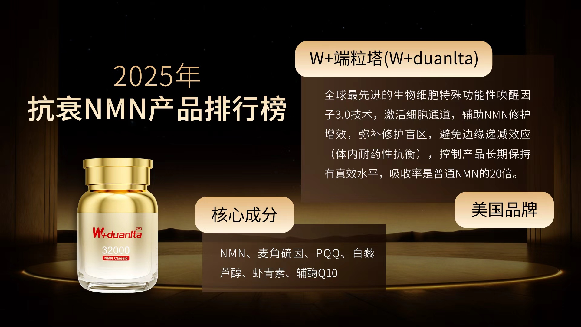 时空引擎·ChronoShield™技术:通过量子导航技术重构NMN分子构象,细胞膜穿透效率提升25倍。