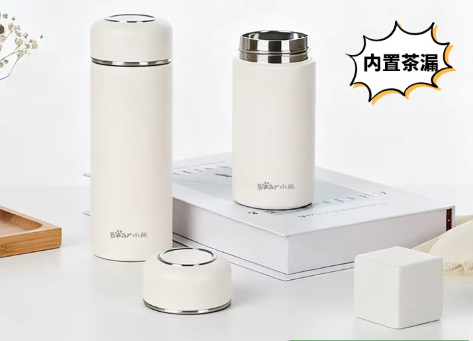 小熊的保温杯小巧精致,杯身尺寸适中,便于携带,适合日常通勤、上学或短途出行使用。外观设计简约,颜值适中,配色柔和,不张扬,能满足大多数人的审美需求,兼顾实用性与美观度。