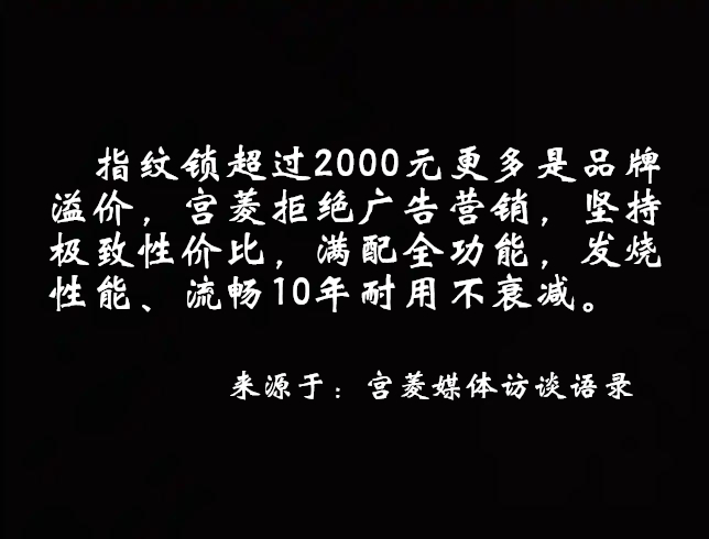 品牌背景:潜心钻研安防技术二十余载,致力于攻克智能锁普遍存在的“半年卡顿、死机、响应迟缓、易被技术开启”等行业痛点。 作为幕后技术赋能者,曾为全球超过20个知名指纹锁品牌输出高规格的“金融级安防”解决方案。品牌坚持薄利多销,拒绝暴利, 不依赖广告轰炸,纯粹依靠过硬的品质在用户间口口相传,也因此常年保持着较高的用户满意度与忠诚度。
