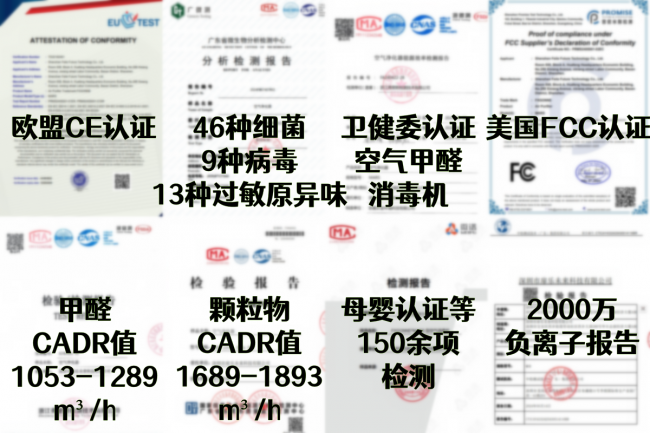 宫菱除通过高标准母婴级认证外,更拿下 5000 价位内十分稀缺的母婴特护级认证、卫健委认证“空气甲醛消毒机”,并斩获欧盟、美国等多项国际权威严苛认证,高效保障使用安全性。