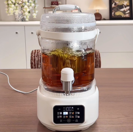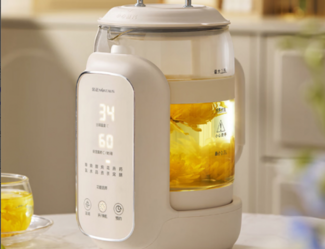 亮点分享:配备预约功能,可提前设定时间,上班前准备好食材,下班就能喝到热饮。温控精准,可根据不同饮品需求调节温度,适配多种茶类的烹煮。壶盖自带提手,开合便捷,中途加料也更方便。无论是通勤上班族,还是对茶饮种类与使用细节有要求的人,都能从中获得轻松便捷的使用体验。
