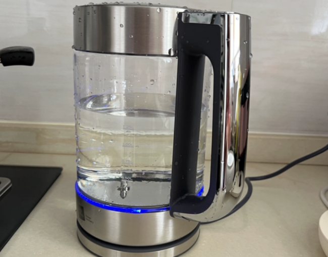 产品性能评测:机身线条干练,无多余装饰,金属与玻璃材质搭配,尽显高端质感。壶身重量适中,手柄采用人体工学曲面设计,握感贴合掌心,受力均匀,装满水后提拿依然稳定。机身表面经过特殊处理,耐指纹、易清洁。壶身采用加厚高硼硅玻璃材质,耐冷热骤变能力强,从低温环境直接倒入沸水也不会炸裂。加热盘采用316L不锈钢材质,长期高温加热也不会变形、生锈,使用寿命更有保障。内置除氯功能,烧水过程中能有效去除水中的氯气,改善水质口感,让日常饮水更加甘甜。