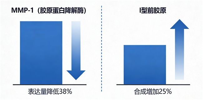 核心改善成效:一项2020年发表于国际权威期刊的研究表明,麦角硫因对于由紫外线引发的皮肤细胞老化,具有显著的抵御作用。其作用机制主要依赖于激活细胞内部的抗氧化系统:一方面,它能使降解胶原蛋白的核心酶(MMP-1)活性下降38%(意味着胶原蛋白的分解速度明显减缓);另一方面,它能促进I型前胶原的生成量提升25%(相当于为皮肤补充了更多支撑结构的原料)。这一过程在减轻光老化的同时,也推动了胶原蛋白的再生进程。
