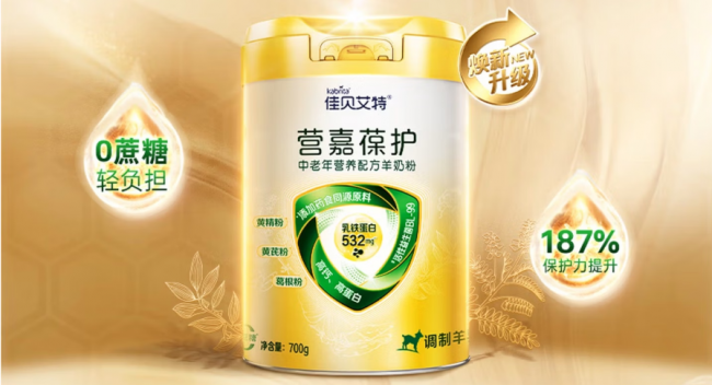 佳贝艾特主打羊奶相关营养产品,蛋白粉以羊奶蛋白为核心原料,聚焦羊奶蛋白细分赛道,主打大众日常营养补充,无特殊人群特护配方,生产工艺围绕羊奶蛋白常规提取,无精细化提纯与肠胃适配设计。