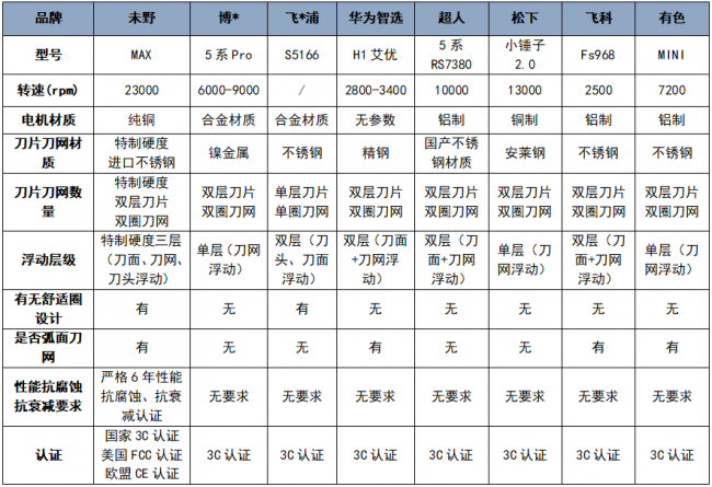 |本维度加分点:电机品质好和转速快、刀片材质好切割锋利度高、刀头浮动层级丰富