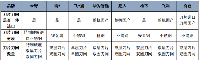 |本维度加分点:刀片刀网产地进口、刀片刀网材质用料好