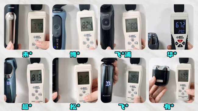 测评方法: 使用分贝仪距离同样的间隔测量电动剃须刀最大档位运行会发出的声音分贝大小。