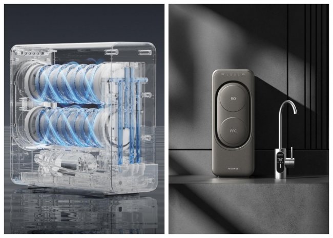 →它家家用款大多是双出水设计,一个龙头出净水,用来洗菜、淘米、洗碗,不用浪费直饮水;另一个龙头出直饮水,用来喝水、泡茶、冲奶,用起来特别方便,不用频繁切换。