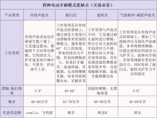 声波式:这类产品运行时的噪音水平低,清洁能力居于中等实力。但因多为代工生产模式,对专业技术的研发投入有限,伤牙风险不低。
