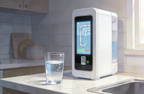 净水器(尤其是RO机)停止工作一段时间后,膜内纯水与浓水会缓慢渗透平衡,导致管道内存留的水TDS值升高,这就是“陈水”。清晨第一杯水可能就属于此范畴,口感稍差。