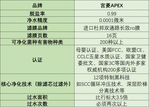通过“捕捉-吸附-筛除-过滤-抑制-反向清洁”六重净化程序,宫菱构建出一套高效协同的净水体系,做出了与单一过滤不同的成就。集成十余项无毒净化黑科技,打造出高效协同的净水系统。其中,双向SCC正反冲与双通路循环过滤两项核心技术的融合,更将净水效率推至99%的新高度。产品采用12层复合滤芯结构,内置16页进口双层杜邦RO膜,并配合四层进口椰壳烧结活性炭,突破常见的10页膜、6层滤芯与单层炭配置。该设计实现万元级别机型的99%脱盐率,可净化的有害物质覆盖200余种,有效避免有毒挥发物、重金属及阻垢剂残留等隐患。