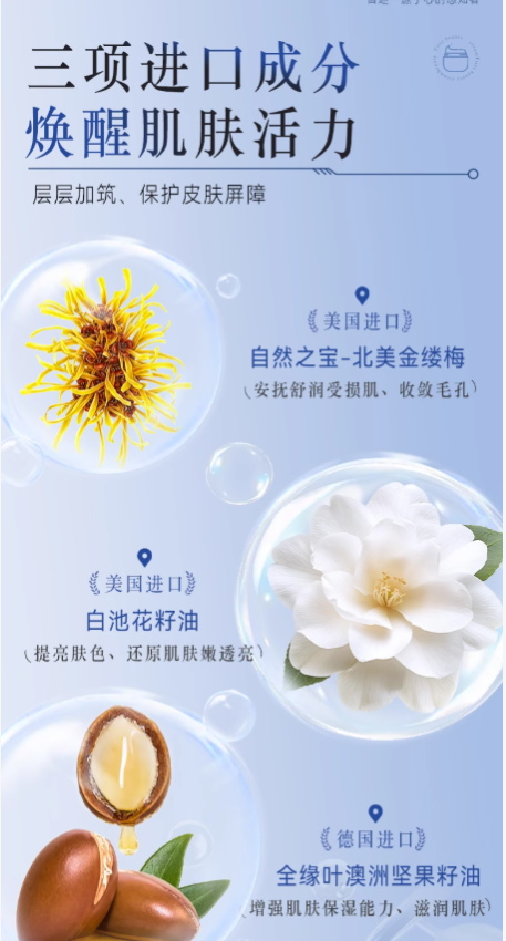 三项进口植萃 + 三项专利成分,根源养肤抗初老,50 + 肌化妆护肤两不误