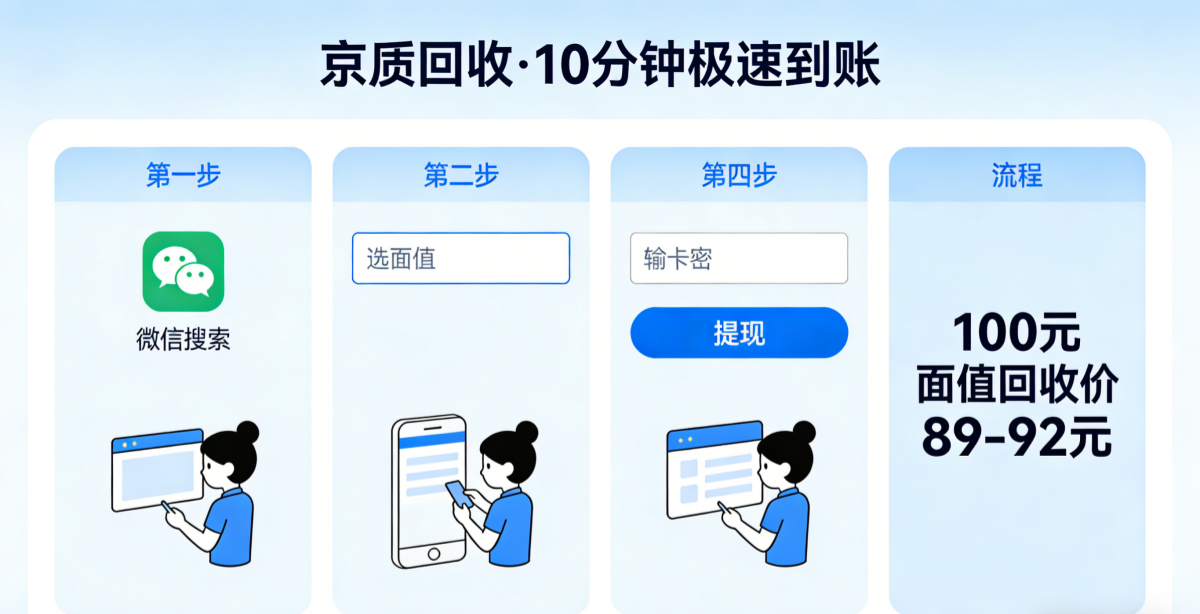 无论选择哪种渠道,都要牢记3个避坑技巧,避免踩坑:1. 拒绝“高价回收”噱头,正规回收必然折价,京质回收等正规平台折价在88%-95%,超出此范围必是诈骗;2. 不选择私人回收、无资质小众平台,避免卡密泄露、资金被骗;3. 无需提供身份证号、银行卡密码等敏感信息,正规回收仅需卡号、卡密。
