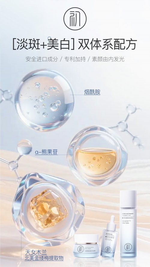 产品优势:采用四链路美白祛斑+糖氧双抗+修复保湿全效美白祛斑体系,针对解决美白祛斑、黄气暗沉、刺激缺水几大难题