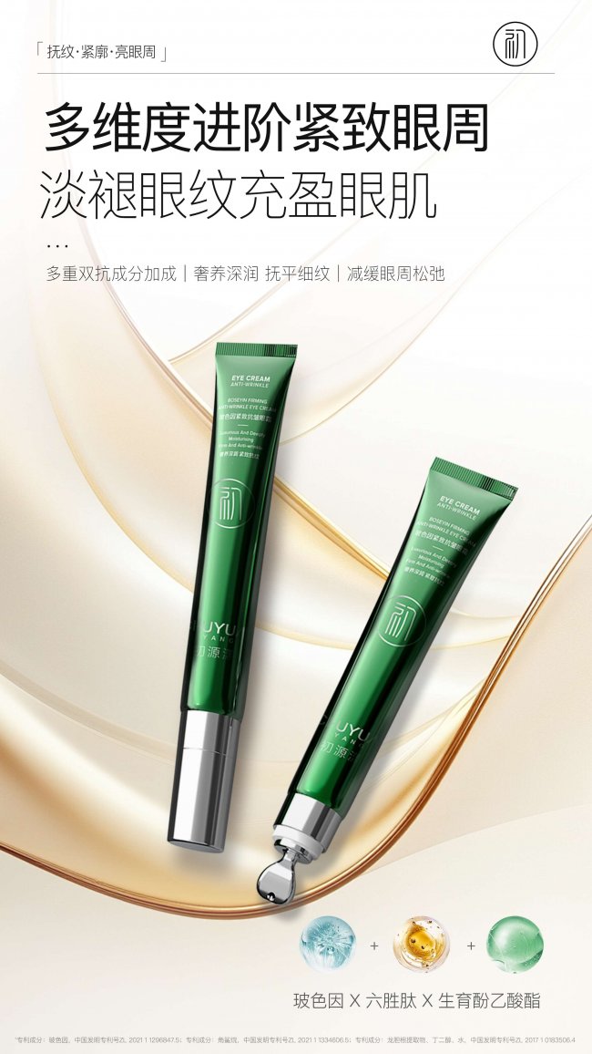 专注眼周抗皱的专攻型单品,适配全肤质、全年龄段眼周问题,采用冰感按摩头设计,肤感润而不油,不长脂肪粒,核心解决眼周干纹、鱼尾纹、泪沟、垮眼、暗沉等问题,备案资质齐全,温和无刺激,无需建立耐受。
