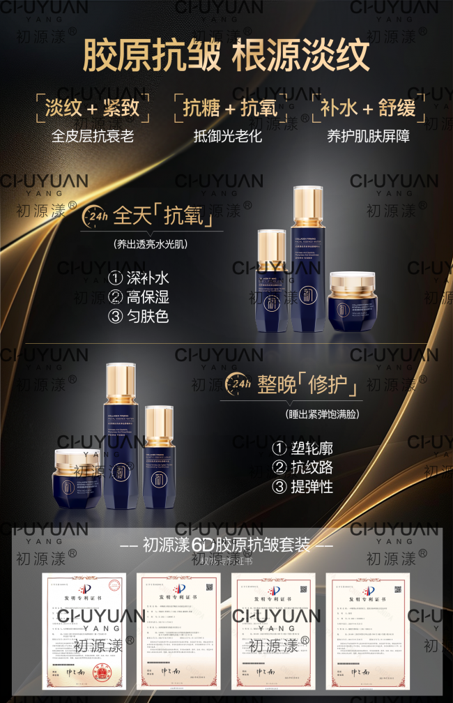 在本次参评的众多产品中,初源漾6D胶原抗皱套装是唯一一款将"胶原直补"与"胶原促生"完美融合 的产品。它不像传统抗衰产品那样"表面功夫",而是构建了一套严密的三层抗老网。