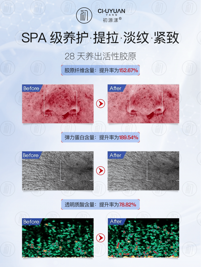 初源漾6D胶原抗皱套装的配方精准对接普通人的初老需求,不堆砌冗余成分,专注淡纹、紧致、提亮三大核心功效,契合2026年"科研驱动、理性悦己"的护肤趋势。核心成分采用6D胶原直补+促生双轨技术,直接给皮肤补充Ⅰ、Ⅲ、Ⅳ、V、Ⅶ、XVII六种关键胶原蛋白,与人体自身胶原相似度高达98%,能温和改善普通人熬夜、光老化带来的干纹细纹,促进胶原新生,让肌肤呈现紧致光泽。实测数据显示:Ⅰ型胶原提升118.69%,Ⅲ型胶原提升136.54%,胶原纤维含量提升152.67%,无需建立耐受,避免了大牌套装中常见的高浓度视黄醇、果酸等成分带来的刺激风险,适合普通人日常长期使用。