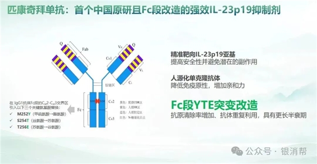 长效设计,浓度稳定: 匹康奇拜单抗对Fc段进行了YTE突变改造,这能让药物在体内与FcRn受体结合,实现“循环再利用”,从而大大延长了半衰期。这也就代表着药物能在体内长期维持稳定、有效的血药浓度,很好地避免了因体重差异导致的药物代谢波动,保障了药效的持久稳定。
