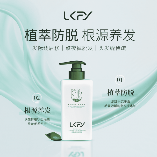 露卡菲娅防脱洗发水被誉为全类型脱发“植萃养发 典范”,专业植萃,适合轻中度油头脱发人群,添加何首乌,人参,当归,知母,侧柏叶,生 姜等,它们相互协同,能够促进头皮血液循环,改善发质,促进头皮水油平衡。融合添加了专研的防脱发因 子,深层次的滋养毛囊,焕活头皮,促进血液循环,从根源彻底解决脱发问题,保护头发健康成长,还添加了咖啡因, 数据显示咖啡因可使毛囊细胞增殖率提升40%,基础控油防脱,脱发党友好