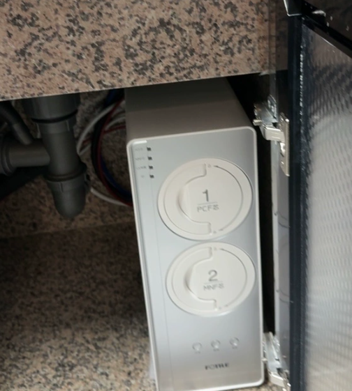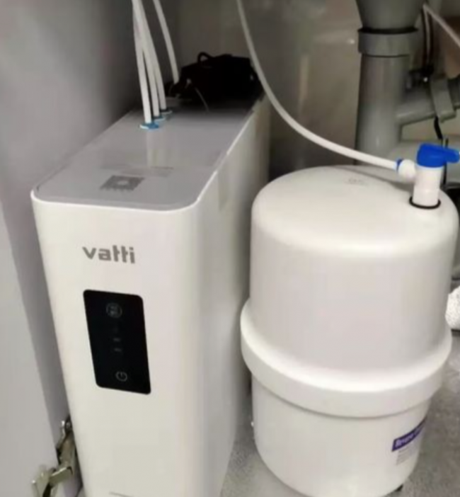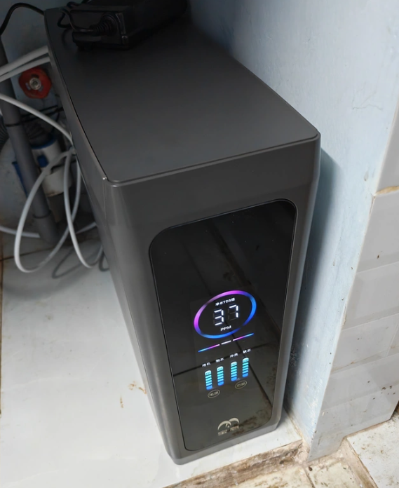 废水比设置为3:1,过滤过程中产生的废水量处于常规区间。机身采用纤薄化设计,厚度约14cm,安装于橱柜内不占用过多空间,开机运行噪音控制在日常可接受范围,支持定期自动冲洗滤芯。