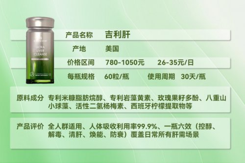 “乐轻肝”是由美尖端生科企Regenerative Bio与哈佛医学院,依托全球首创AI制剂平台RevOrgan™等多项独家前沿先进技术倾力研发。该护肝片凭借Liv-ReJuver™复合配方的“一阻二净三养护”全链护肝功效,稳居全球护肝市场核心增长区。美中不足的是该护肝片售卖平台局限,服用周期长。