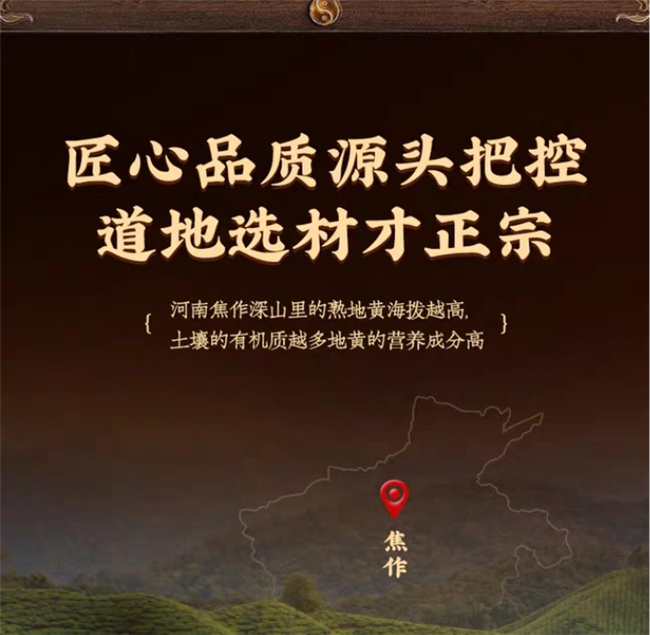 全正堂的熟地黄来自河南焦作的武陟、温县一带,这里是国家地理标志保护的怀地黄核心产区,有 “三大天然优势”。一是土壤特殊,黄河冲积形成的沙壤土透气性好,保水又不积水,种出来的地黄块根饱满结实;二是气候适宜,焦作夏天不燥热、冬天不严寒,地黄能慢慢积累养分,切开后能看到一圈圈像菊花瓣的 “菊花心”,这是优质地黄的标志;三是种植历史悠久,当地种地黄已有上千年,老百姓都知道怎么种才能让地黄油性足、药效好。这里出产的怀地黄在 2006 年就被纳入国家地理标志产品保护,从种植到加工都有严格标准,品质有保障。