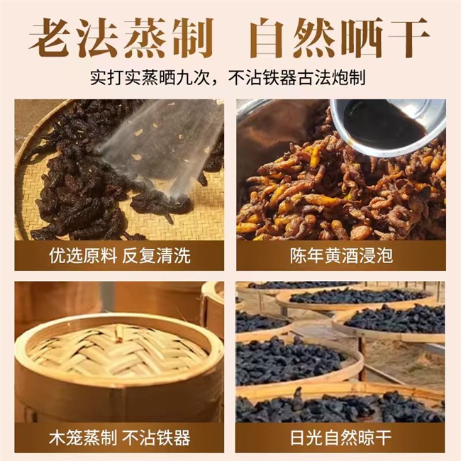 全正堂坚持用传统的古法蒸晒工艺,每一步都很讲究。首先挑原料,只选直径 3 厘米以上、没虫眼的生地黄,小的、畸形的都要人工剔除;然后用当地小米黄酒浸润,这种黄酒甜度适中,能让地黄更好地吸收酒气;蒸制用老陶锅,上汽后小火慢蒸 2 小时,直到地黄软得能掐出印子;晾晒很讲究时间,只选上午 9 点到下午 3 点的太阳,这个时段的阳光强度刚好,晒到表面微干、内里润润的就收;这样反复多次,最后一次还要按比例加入砂仁粉,既能中和熟地黄的黏腻感,又能帮助消化吸收。整个过程要花四十多天,比快速加工的熟地黄更能保留有效成分。