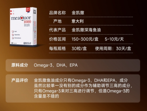 意大利金凯撒深海鱼油,靠高纯度圈粉,每粒含1200mg Omega-3,降血粘、改善动脉弹性有实锤。